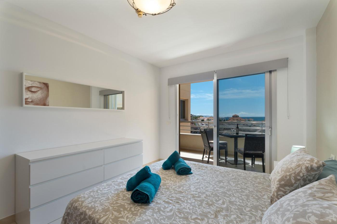 The spacious apartment is fitted with 2 bedrooms, 1 bathroom, bed linen, towels, a TV, a fully equipped kitchen, and a balcony with sea views.