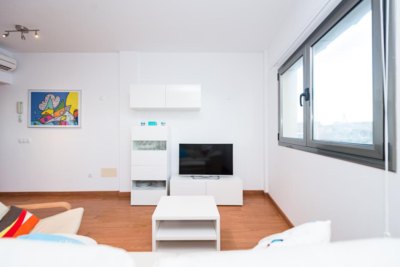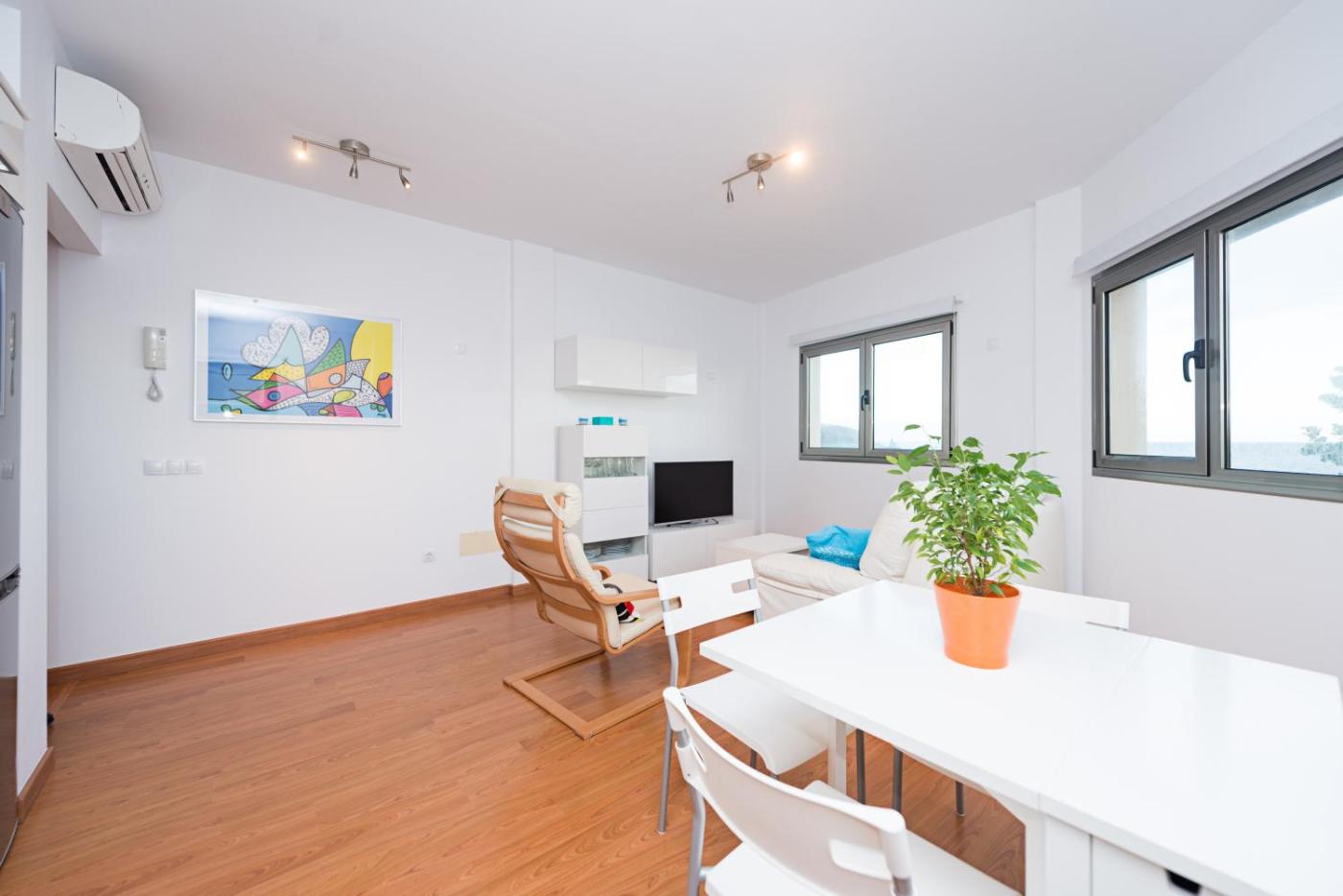 Studio Apartment with Sea View. This apartment comprises 1 living room, 2 separate bedrooms and 1 bathroom with a shower and free toiletries. Meals can be prepared in the well-fitted kitchen, which comes with a refrigerator, a dishwasher, kitchenware and an oven. This apartment features a washing machine, flat-screen TV, sea views, as well as fruit for guests. The unit offers 3 beds.