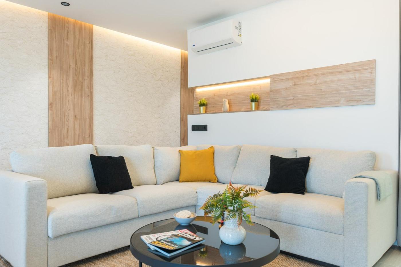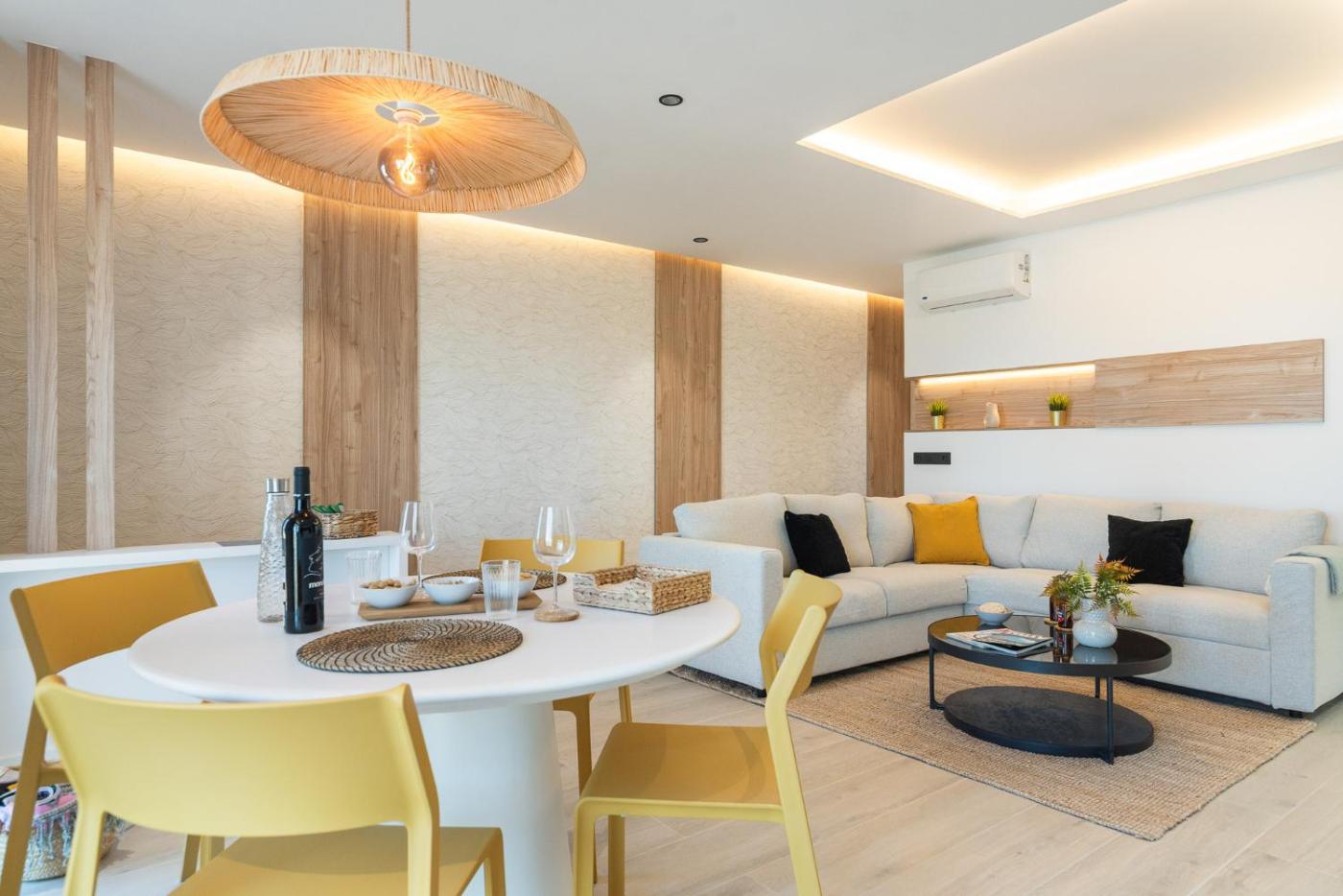 Two-Bedroom Apartment. Featuring a private entrance, this spacious apartment also consists of 1 living room, 2 separate bedrooms and 1 bathroom with a hairdryer. In the well-equipped kitchen, guests will find a stovetop, a dishwasher, kitchenware and an oven. The apartment features air conditioning, a washing machine, a coffee machine as well as a terrace with sea views. The unit offers 3 beds.
