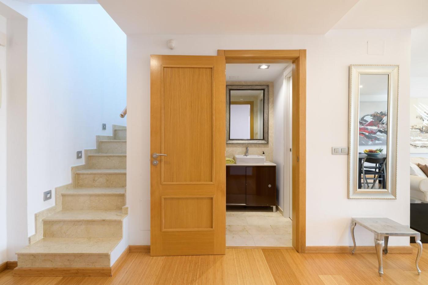 The air-conditioned apartment consists of 1 bedroom, a living room, a fully equipped kitchen with a dishwasher and a coffee machine, and 2 bathrooms with a shower and a hair dryer. Towels and bed linen are offered in the apartment.