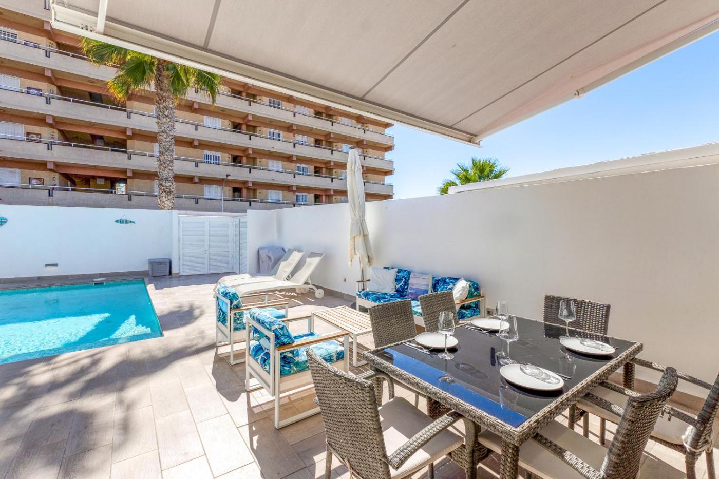 Featuring air-conditioned accommodation with a private pool, Bungalow with private pool is located in Callao Salvaje. This property offers access to a terrace, free private parking and free WiFi. The accommodation provides airport transfers, while a car rental service is also available.