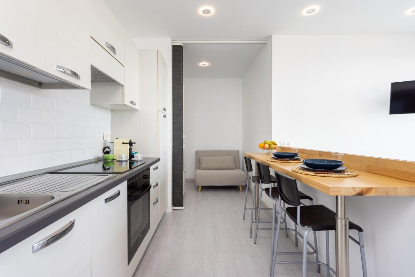 The apartment is equipped with a TV. The kitchen is fitted with an oven, a microwave and a toaster, as well as coffee machine and kettle. The property offers pool views.