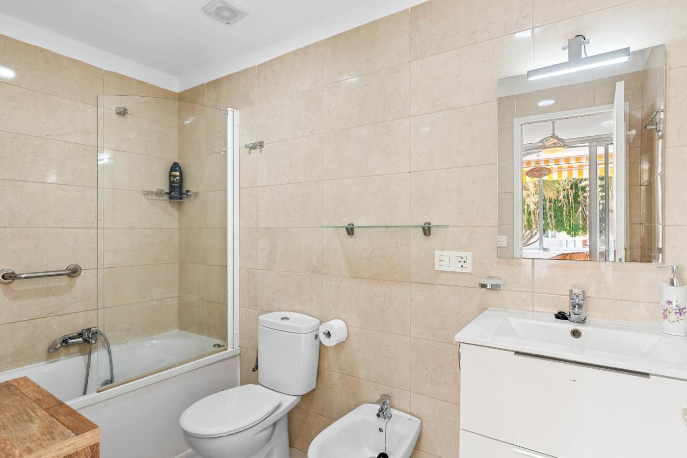 Two-Bedroom Apartment with Garden View. This spacious apartment is comprised of 1 living room, 2 separate bedrooms and 2 bathrooms with a bath and a shower. Meals can be prepared in the kitchenette, which is fitted with a stovetop, a refrigerator, a dishwasher and kitchenware. The apartment features tiled floors, a seating area with a flat-screen TV, a washing machine, a tea and coffee maker as well as garden views. The unit offers 2 beds.