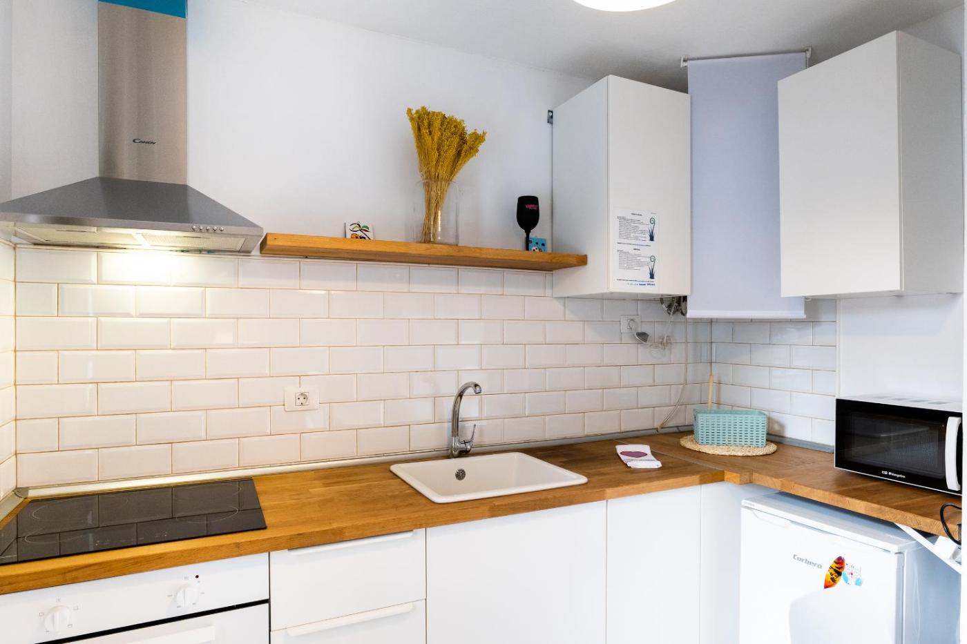 One-Bedroom Apartment. Featuring a private entrance, this apartment consists of 1 living room, 1 separate bedroom and 1 bathroom with a shower and a hairdryer. Meals can be prepared in the well-fitted kitchen, which is equipped with a stovetop, a refrigerator, kitchenware and an oven. Boasting a terrace with garden views, this apartment also provides a washing machine and a flat-screen TV. The unit offers 2 beds.