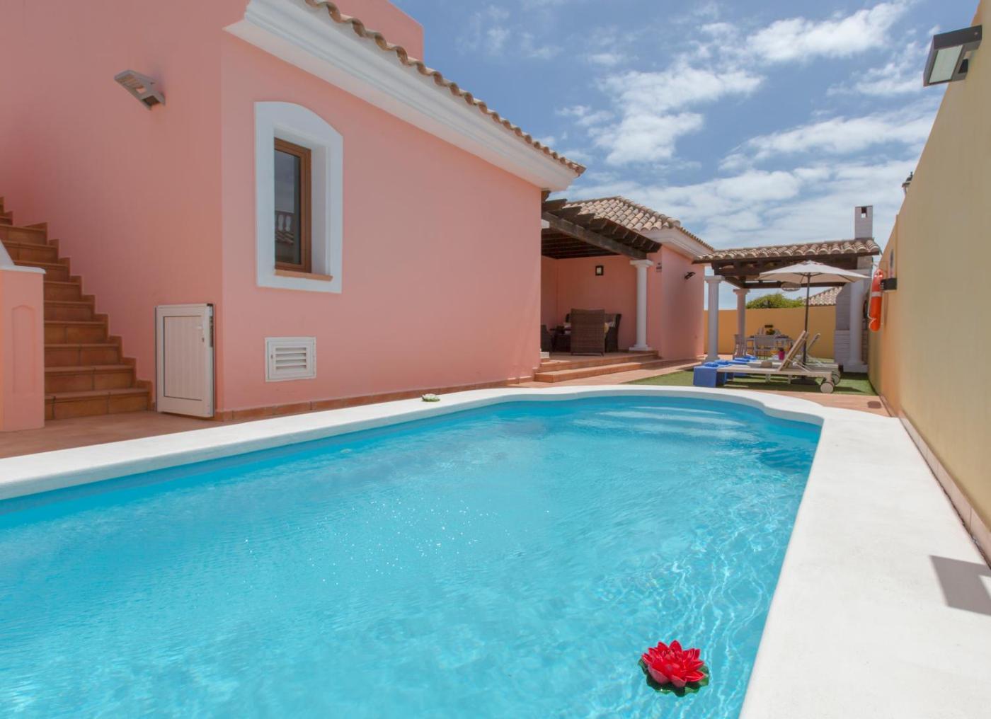 Featuring a balcony with mountain views, an open-air bath and a garden, Villa Bella Lucia 1. Piscina Climatizada, WiFi, BBQ. Can be found in Corralejo, close to Las Clavellinas Beach and 30 km from Eco Museo de Alcogida. This villa provides air-conditioned accommodation with a patio. There is a year-round outdoor pool and guests can make use of free WiFi, free private parking and an electric vehicle charging station.