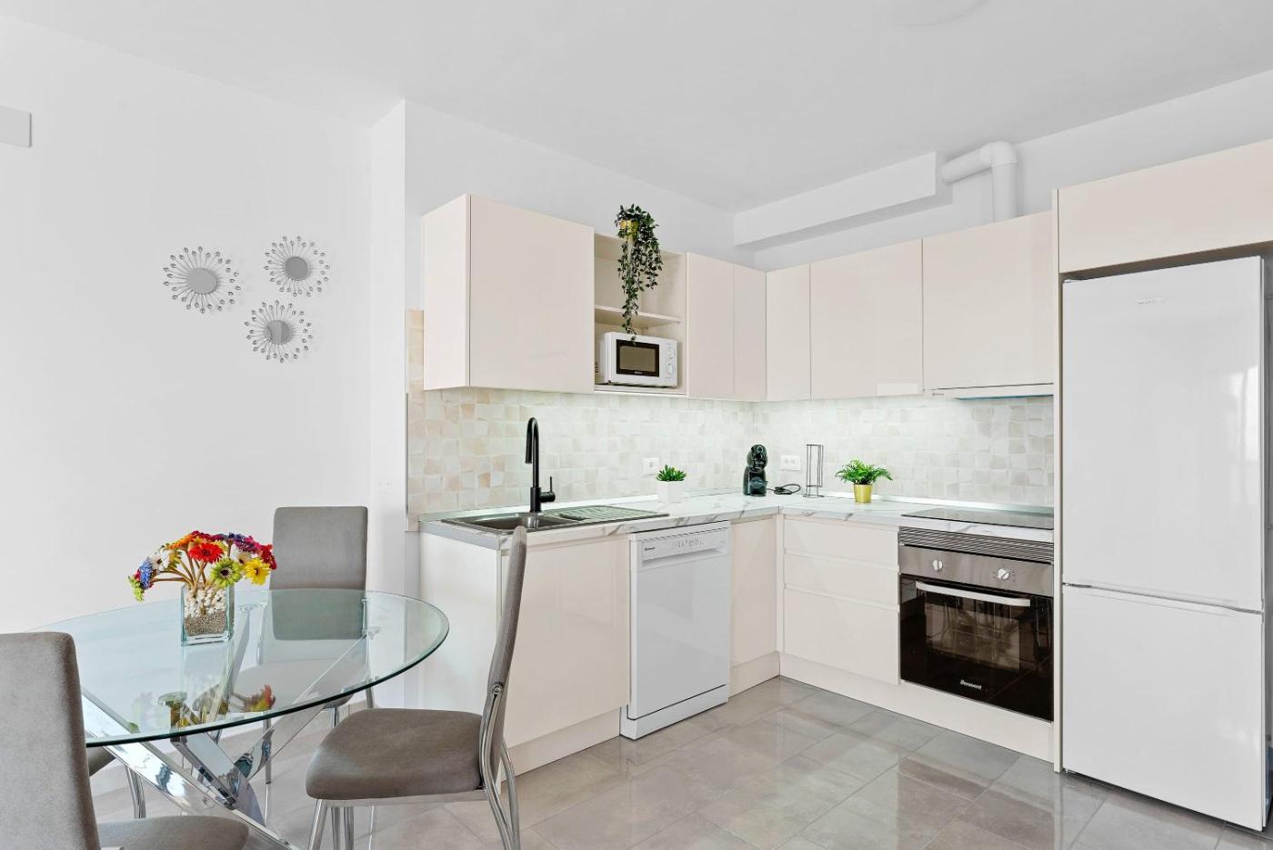 Apartment with View and Balcony. Guests will have a special experience as this apartment features a pool with a view. This apartment is comprised of 1 living room, 1 separate bedroom and 1 bathroom with a hairdryer and free toiletries. In the kitchen, guests will find a stovetop, a refrigerator, a dishwasher and kitchenware. The apartment offers a TV with cable channels, a washing machine, a private entrance, a tea and coffee maker as well as sea views. The unit offers 2 beds.