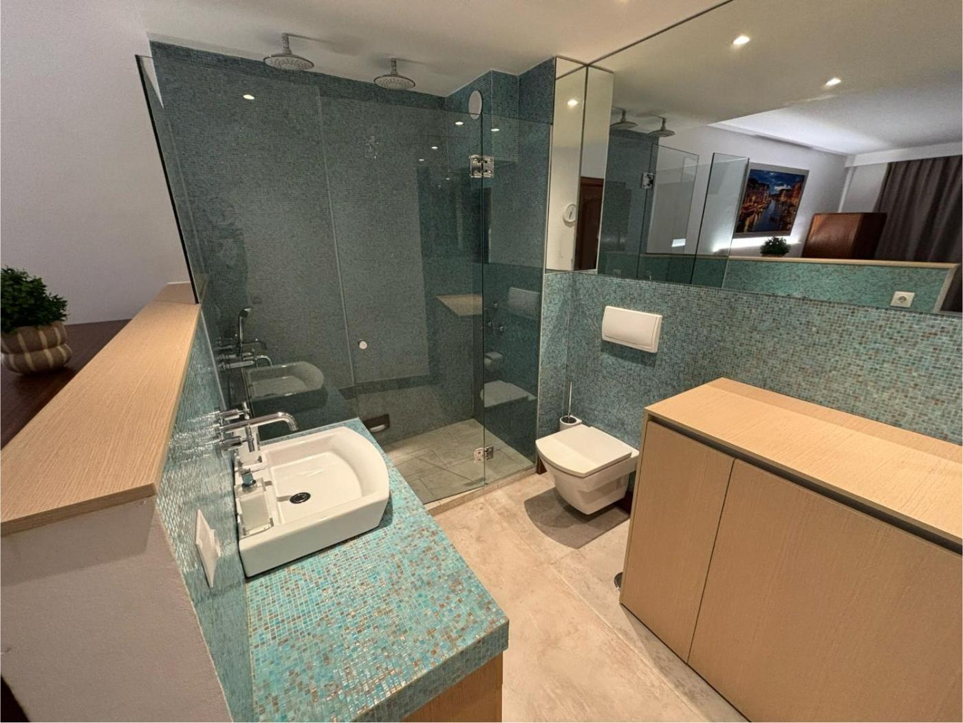 One-Bedroom Apartment. The pool with a view is a top feature of this apartment. This apartment comes with 1 living room, 1 separate bedroom and 1 bathroom with a shower and a hairdryer. In the fully equipped kitchen, guests will find a refrigerator, a dishwasher, kitchenware and a microwave. Boasting a terrace with sea views, this apartment also features a washing machine and a flat-screen TV. The unit has 2 beds.