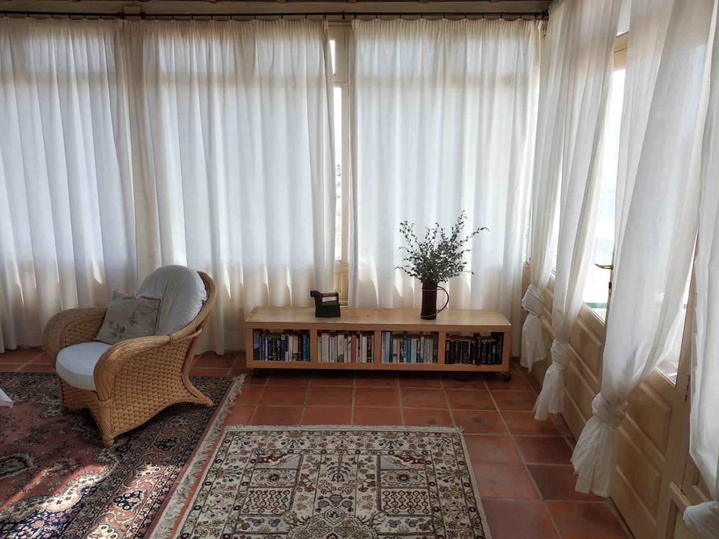 Two-Bedroom Villa. This rustic villa features floor-to-ceiling windows and panoramic views of the sea and the mountains. It has 2 bedrooms, 1 bathroom and a lounge with sofa, as well as a dining room and a kitchen. Outdoors, there is a porch and a courtyard.