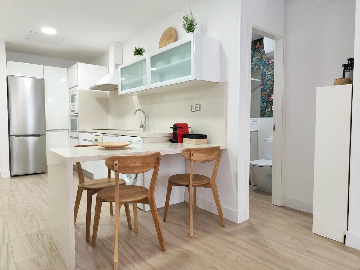 One-Bedroom Apartment. This apartment comprises 1 living room, 1 separate bedroom and 1 bathroom with a shower and a bidet. Meals can be prepared in the kitchen, which comes with a refrigerator, a dishwasher, kitchenware and an oven. This apartment features a washing machine, a tea and coffee maker, flat-screen TV, as well as chocolate for guests. The unit offers 2 beds.
