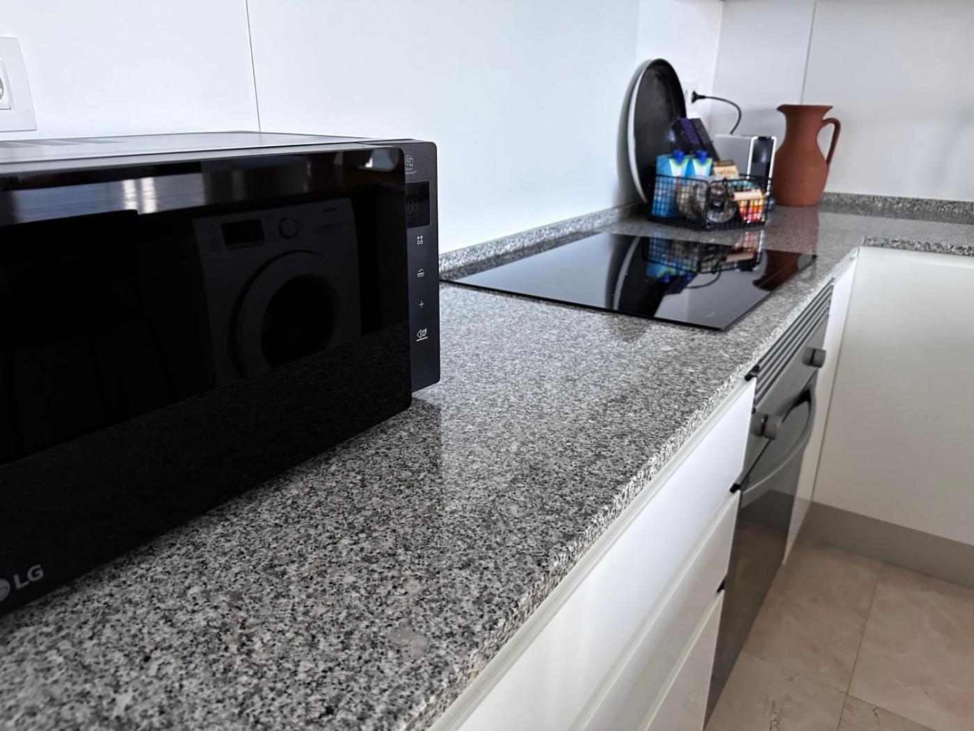 Two-Bedroom Apartment with Sea View. This spacious apartment is comprised of 1 living room, 2 separate bedrooms and 1 bathroom with a shower and free toiletries. Guests can make meals in the kitchen that is fitted with a stovetop, a refrigerator, kitchenware and an oven. The apartment features tiled floors, a seating area with a flat-screen TV, a washing machine, a tea and coffee maker as well as sea views. The unit offers 2 beds.