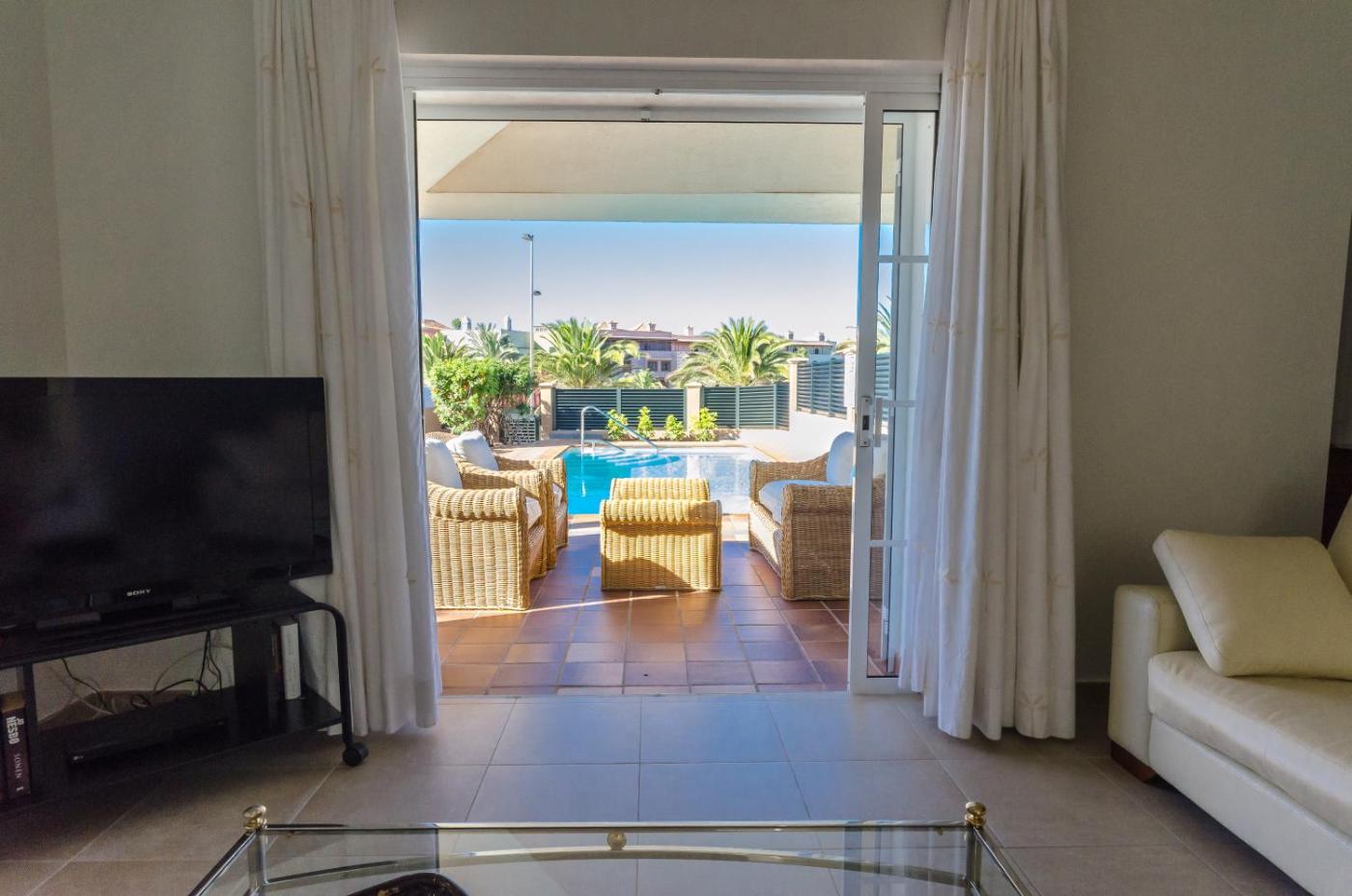 Three-Bedroom Villa with Private Pool. Offering a private garden, a furnished terrace, free bikes and an outdoor pool, this air-conditioned villa features wooden floors in its 3 bedrooms. The living room includes a sofa, TV and dining area and the kitchen is equipped with an oven, microwave and dishwasher. There is also a utility room with a washing machine and tumble-dryer.