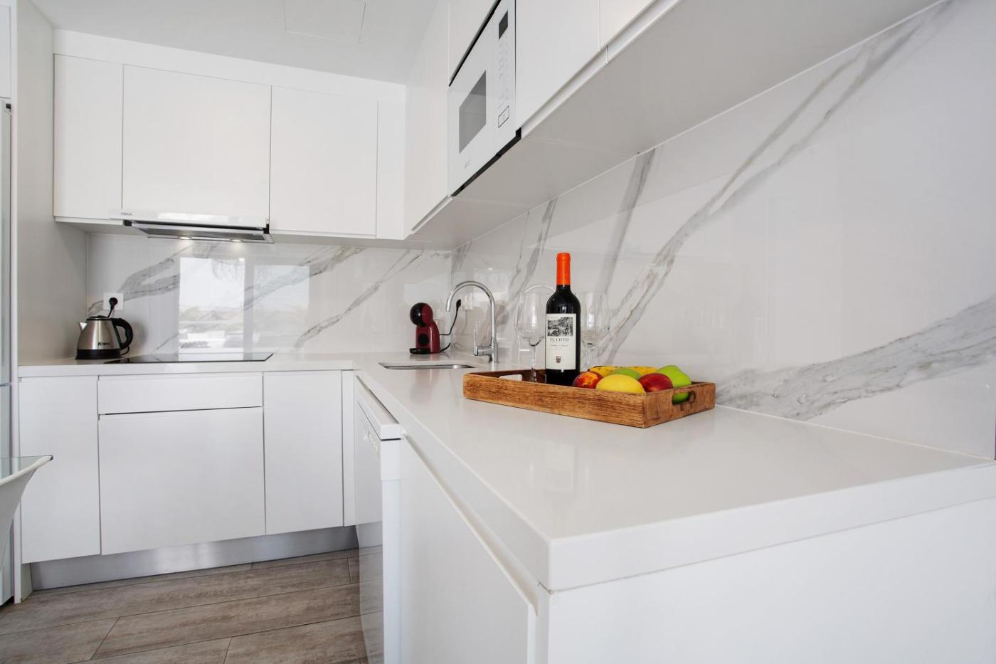 Superior One-Bedroom Apartment with Balcony. Featuring 1 bedroom and 1 bathroom, this apartment offers a living room and terraceyou can relax. Guests can make meals in the kitchen that is equipped with a dishwasher, kitchenware, a microwave and a toaster. Boasting a balcony with sea views, this apartment also provides a washing machine and a TV with cable channels. The unit has 2 beds.