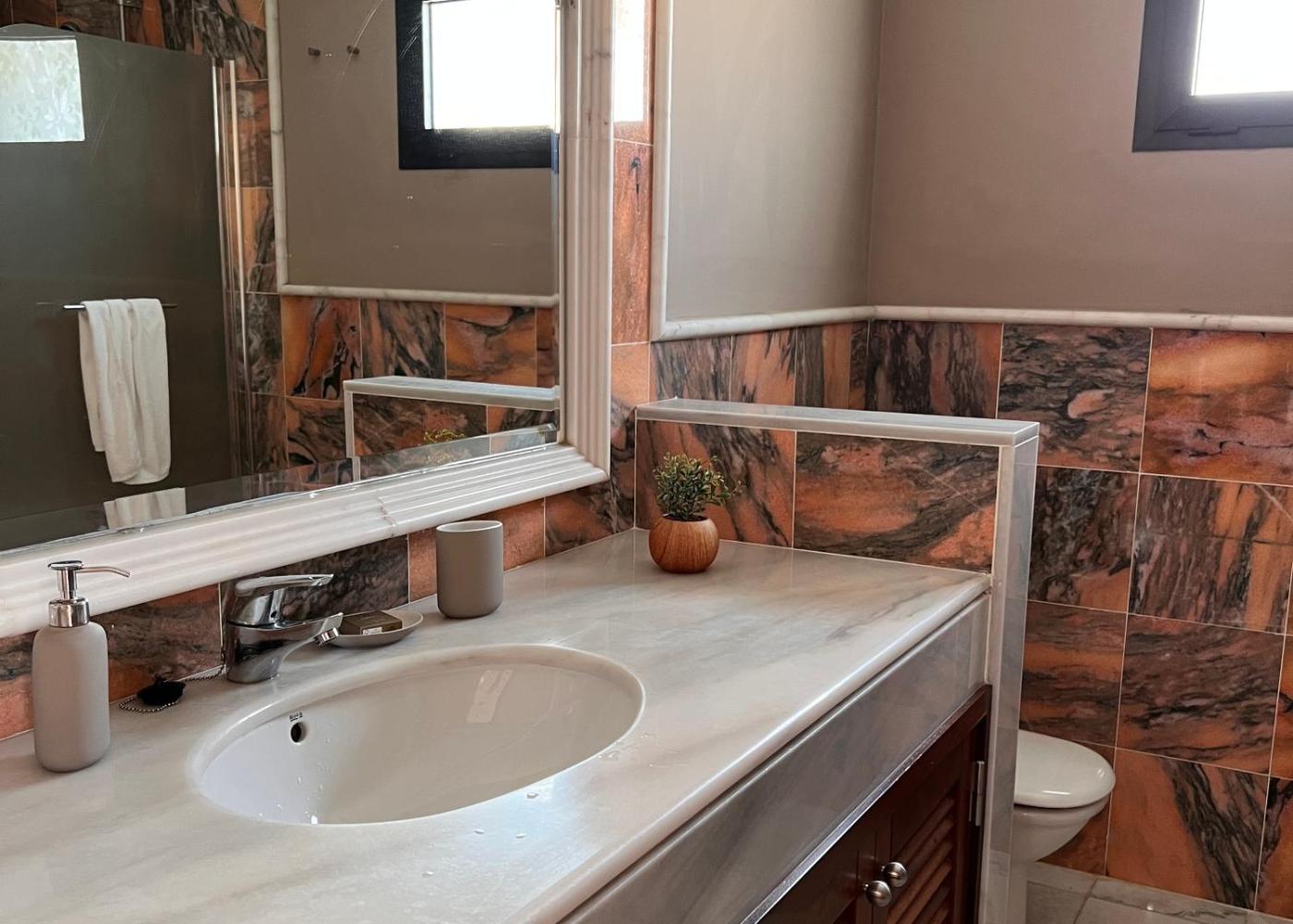 The villa with a terrace and garden views has 3 bedrooms, a living room, a flat-screen TV, an equipped kitchen with a dishwasher and an oven, and 2 bathrooms with a bidet. The air-conditioned unit at the property features a bath and a dressing room. For added privacy, the accommodation features a private entrance.