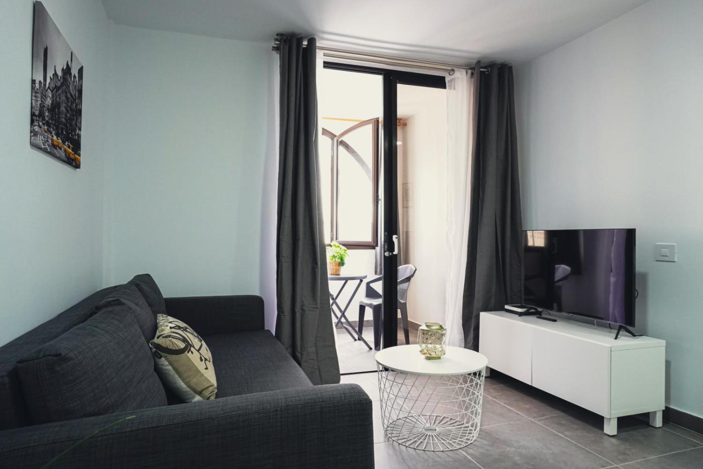 One-Bedroom Apartment. Boasting a private entrance, this apartment also includes 1 bedroom, a seating area and 1 bathroom with a shower and a hairdryer. Guests can make meals in the kitchen that is fitted with a refrigerator, kitchenware, an oven and a microwave. The apartment offers a flat-screen TV, a washing machine, soundproof walls, a tea and coffee maker as well as a quiet street view. The unit has 1 bed.