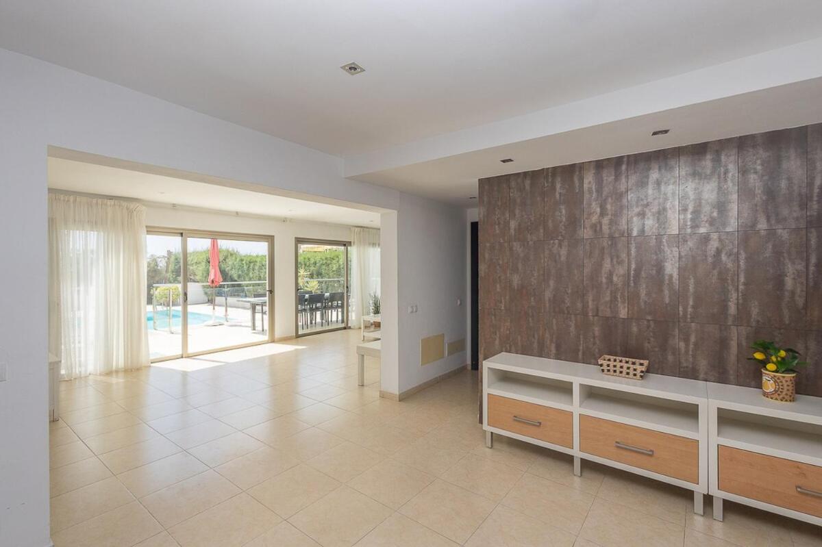 Villa. The spacious villa features a TV, a washing machine, a dining area, a sofa as well as pool views.