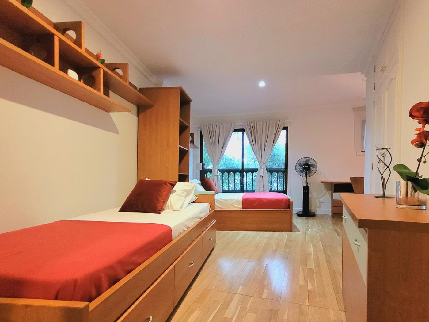 Four-Bedroom Deluxe Apartment. This spacious apartment is comprised of 1 living room, 4 separate bedrooms and 3 bathrooms with a bath and a shower. Meals can be prepared in the well-fitted kitchen, which comes with a stovetop, a refrigerator, a dishwasher and kitchenware. The air-conditioned apartment offers a flat-screen TV with streaming services, a washing machine, a tea and coffee maker, a seating area as well as sea views. The unit offers 7 beds.