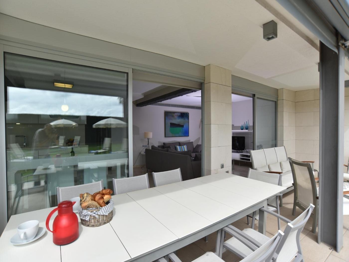 The apartments at Las Barcas feature marble floors and stylish, minimalist décor. Each one has an attractive kitchen with a washing machine and dishwasher. They are cleaned daily, and beach towels are included.