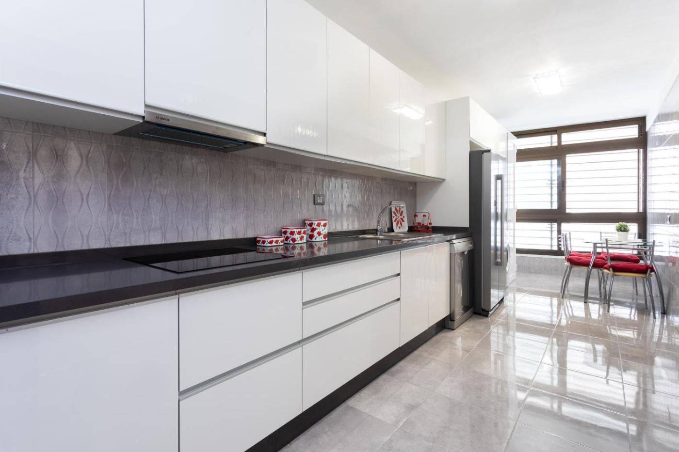 Apartment. The spacious apartment features 5 bedrooms and 3 bathrooms with a bath and free toiletries. Guests can make meals in the kitchen that is fitted with a stovetop, a refrigerator, a dishwasher and kitchenware. The air-conditioned apartment offers a flat-screen TV, a washing machine, a tea and coffee maker, a seating area as well as city views. The unit offers 6 beds.