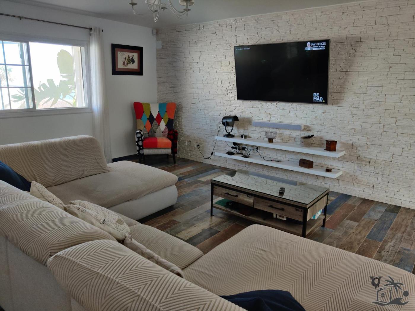 Three-Bedroom House. This holiday homes standout feature is the pool with a view. Boasting a private entrance, this spacious holiday home also includes 3 living rooms, 3 separate bedrooms and 2 bathrooms with a walk-in shower. Guests will find a refrigerator, a dishwasher, kitchenware and an oven in the well-fitted kitchen. The holiday home also features a barbecue. Featuring a terrace with sea views, this holiday home also offers a washing machine and a flat-screen TV with satellite channels. The unit has 5 beds.