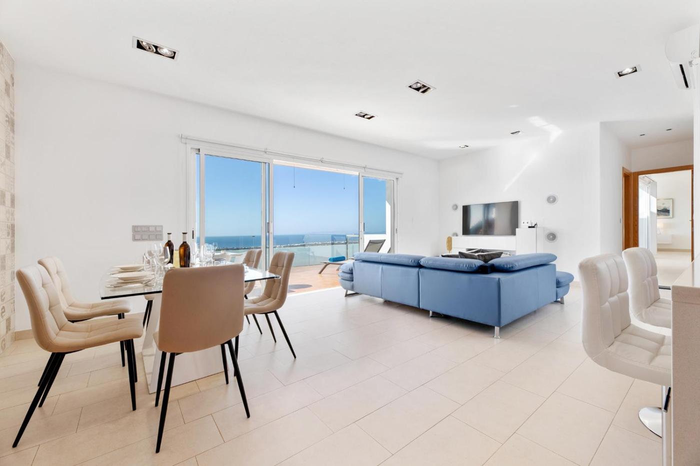 The spacious villa has 3 bedrooms, 2 bathrooms, bed linen, towels, a flat-screen TV with streaming services, a dining area, a fully equipped kitchen, and a terrace with sea views. The air-conditioned unit at the property features a bath and a dressing room. The property has an outdoor dining area.